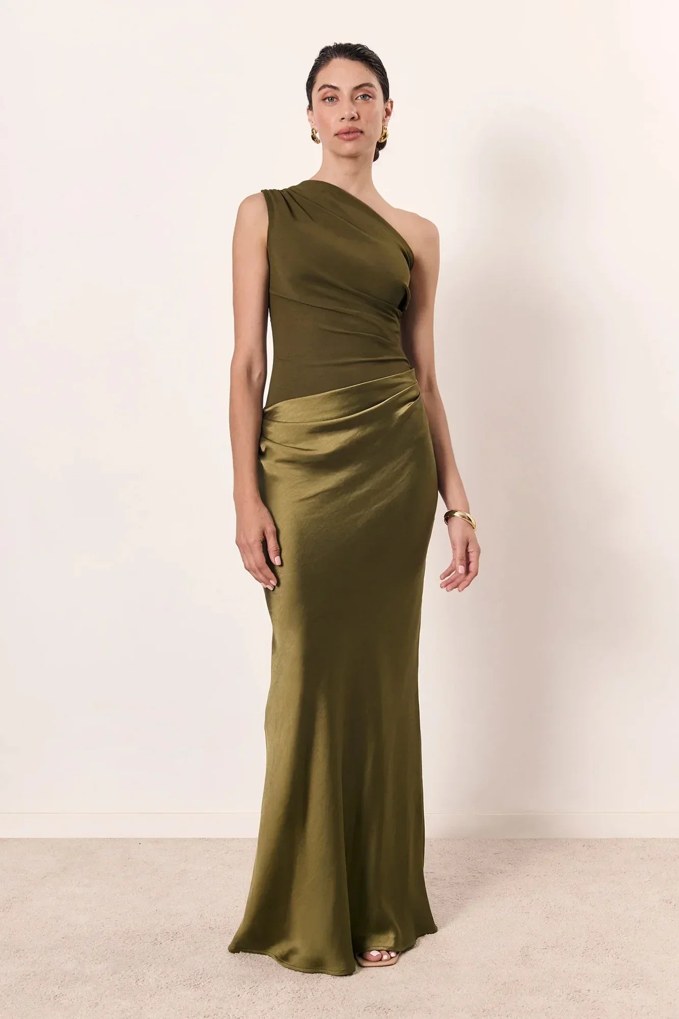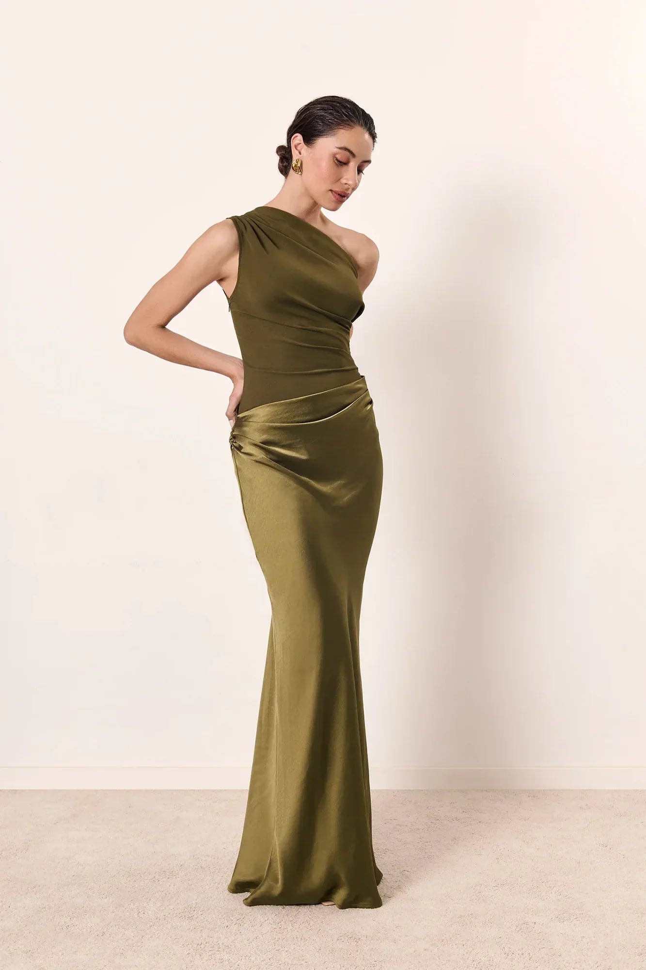 Ginette - Rochie Lungă Plisată cu O Singură Umăr