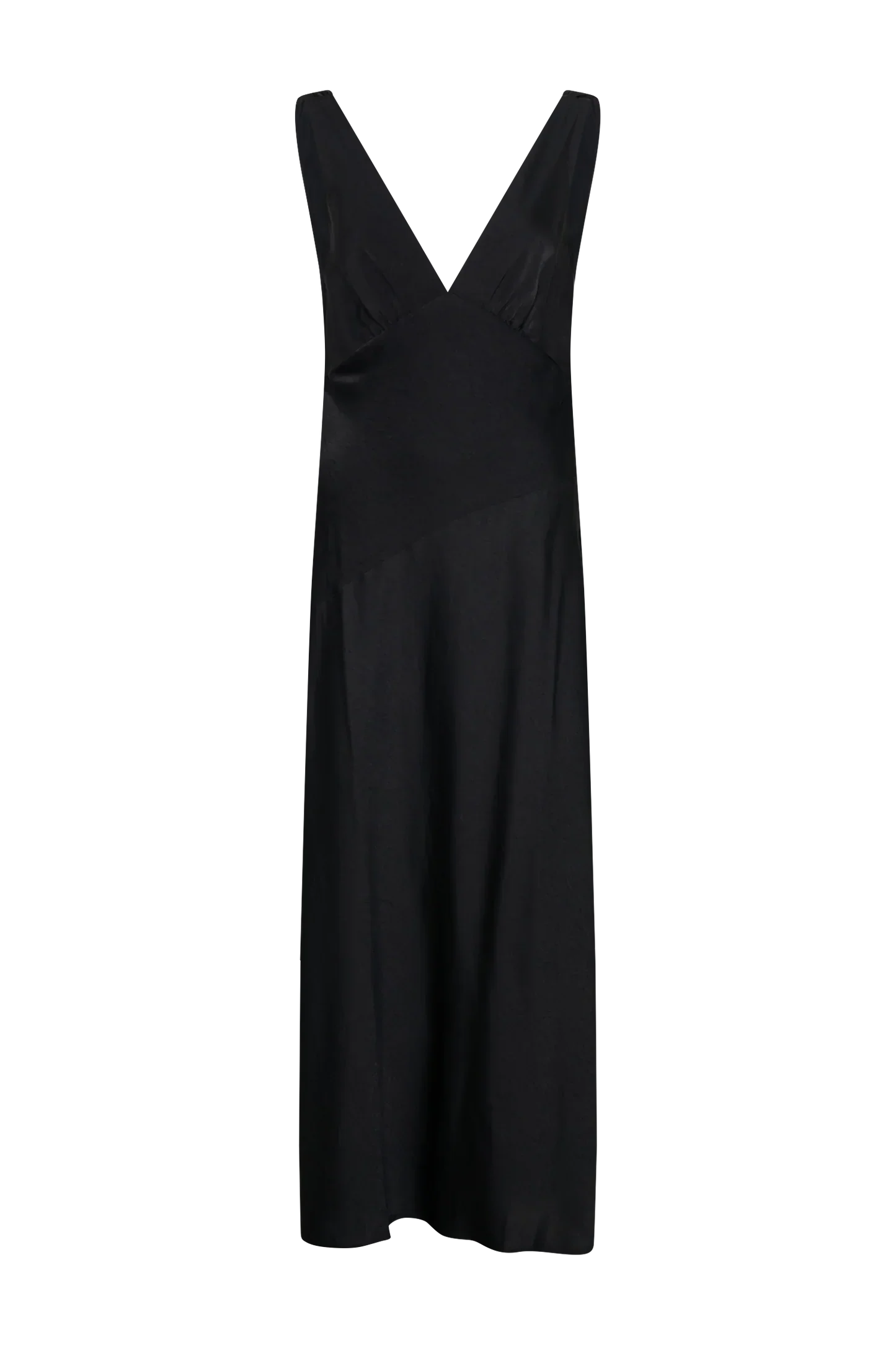 Nadia - Rochie Lungă Satinat cu Spate Drapat